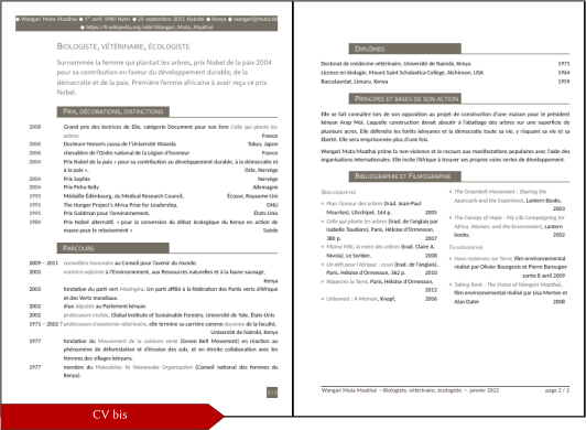 Le modèle bis (bis comme la couleur bise) est illustré par celui de Wangari Muta Maathai, prix Nobel de la paix 2004, biologiste, vétérinaire et écologiste.