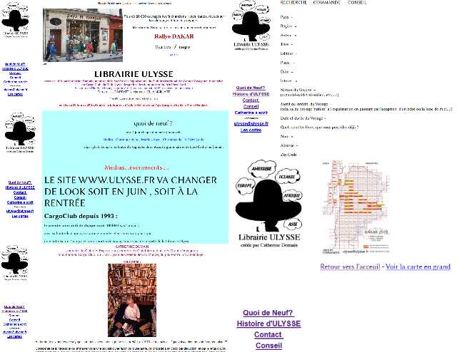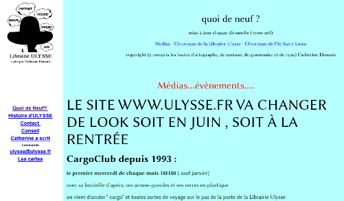 Ci-dessous : une vision de l’avant, qui nécessitait une bonne refonte. Le site n’en avait pas connu depuis sa mise en ligne en 1998. Il avait été fait sous Golive avec des frames et, jusqu’à présent était encore mis à jour avec Golive sous OS 9. Il était vraiment temps de faire quelque chose d’autre.